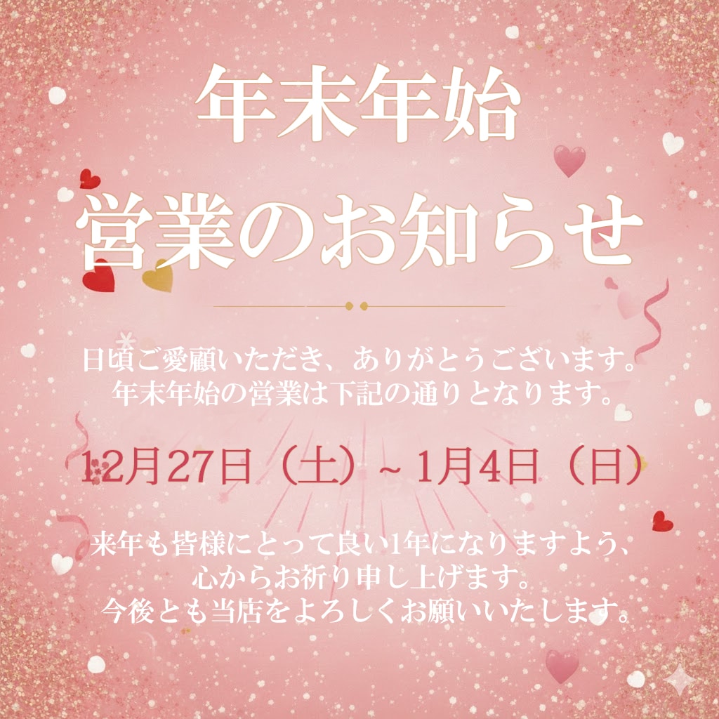 2025/12/23年末年始の営業について